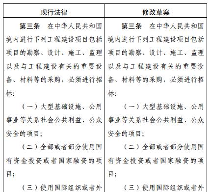 關(guān)于修改《招標(biāo)投標(biāo)法》《招標(biāo)投標(biāo)法實(shí)施條例》的決定(征求意見(jiàn)稿)和《招標(biāo)投標(biāo)法》《招標(biāo)投標(biāo)法實(shí)施條例》修改前后對(duì)照表的全文如下: