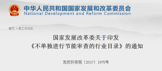 國家發(fā)改委公示:這些行業(yè)不單獨(dú)進(jìn)行節(jié)能審查