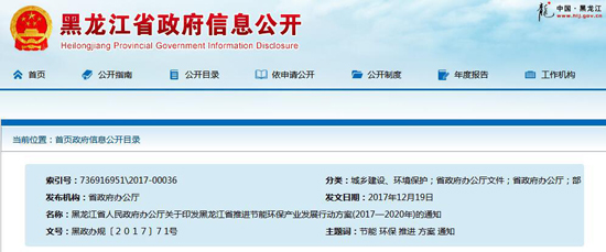 黑龍江省人民政府辦公廳關于印發黑龍江省推進節能環保產業發展行動方案(2017—2020年)的通知