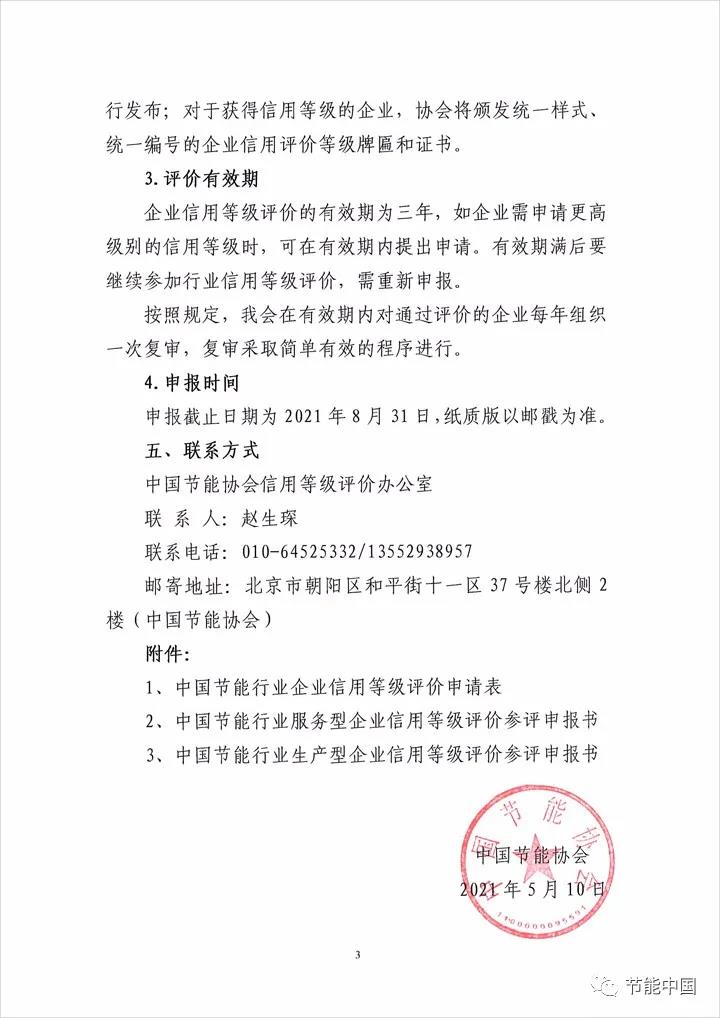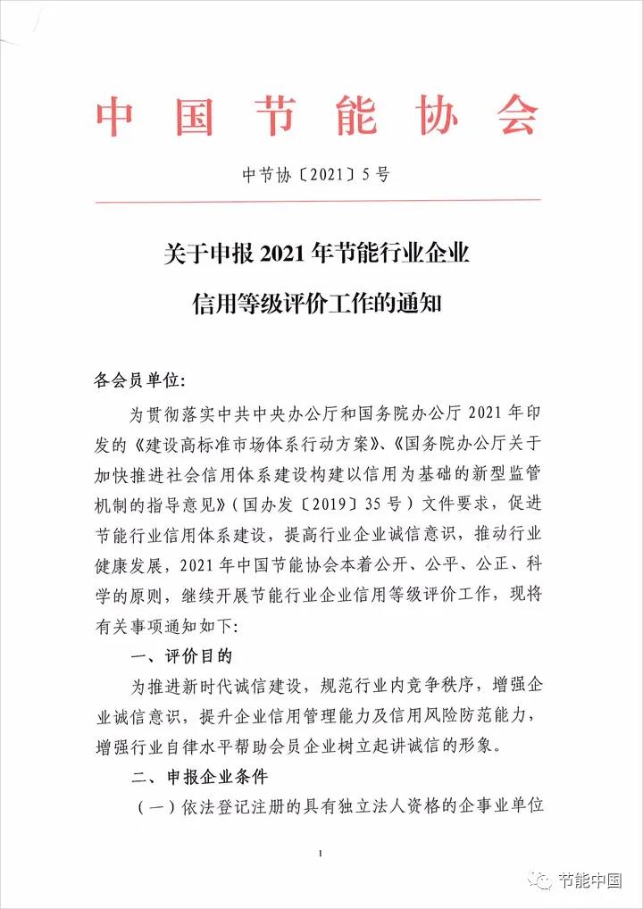 關(guān)于申報(bào)2021年節(jié)能行業(yè)企業(yè)信用等級(jí)評(píng)價(jià)工作的通知