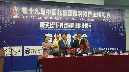 在今天的第十九屆科博會“循環(huán)經(jīng)濟研討會暨環(huán)保科技項目專場推介會”上,中科節(jié)電董事長郝澤忠先生與上海韓國商會會長鄭喜天先生共同簽署了戰(zhàn)略合作協(xié)議,雙方將共同拓展韓國企業(yè)的節(jié)能減排項目達成戰(zhàn)略合作伙伴。以中科宇杰自主知識產(chǎn)權(quán)的智能節(jié)電設備為核心,全方位推進在華企韓資企業(yè)的整體節(jié)能審計,節(jié)能改造項目。