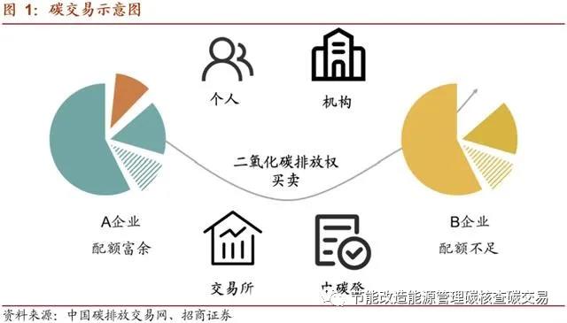 碳交易市場是由政府通過對(duì)能耗企業(yè)的控制排放而人為制造的市場。通常情況下,政府確定一個(gè)碳排放總額,并根據(jù)一定規(guī)則將碳排放配額分配至企業(yè)。如果未來企業(yè)排放高于配額,需要到市場上購買配額。與此同時(shí),部分企業(yè)通過采用節(jié)能減排技術(shù),最終碳排放低于其獲得的配額,則可以通過碳交易市場出售多余配額。雙方一般通過碳排放交易所進(jìn)行交易。