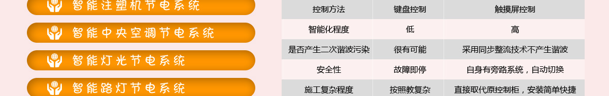 自主研發(fā)的CUP重要處理器,直觀的將節(jié)電率,用電時間,電壓,電流等等數(shù)據(jù),通過觸摸顯示器呈現(xiàn)出來,真正實現(xiàn)智能化控制,操作簡便,直觀,全部功能通過觸摸屏控制,操作起來猶如您使用的iPhone手機一般。