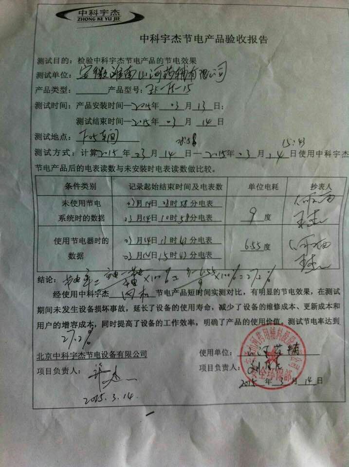 祝賀中科宇杰成功完成山河藥輔企業節電測試 節電率達27.2%